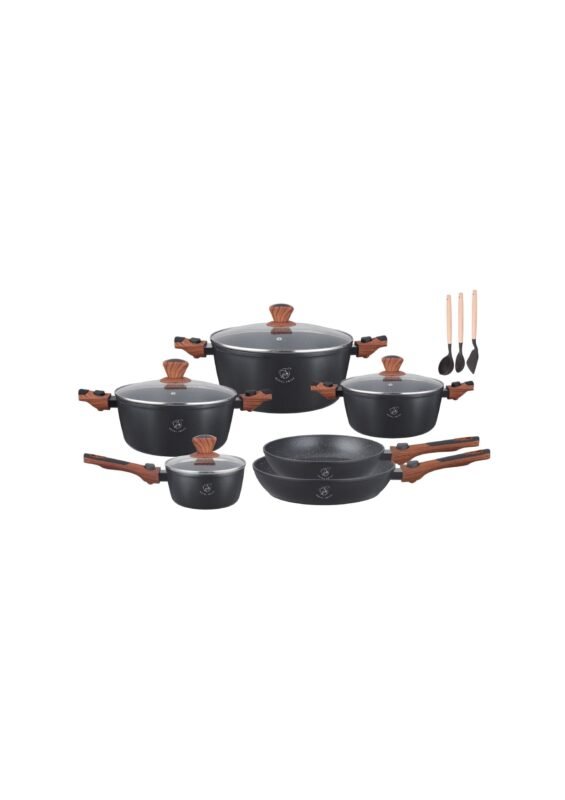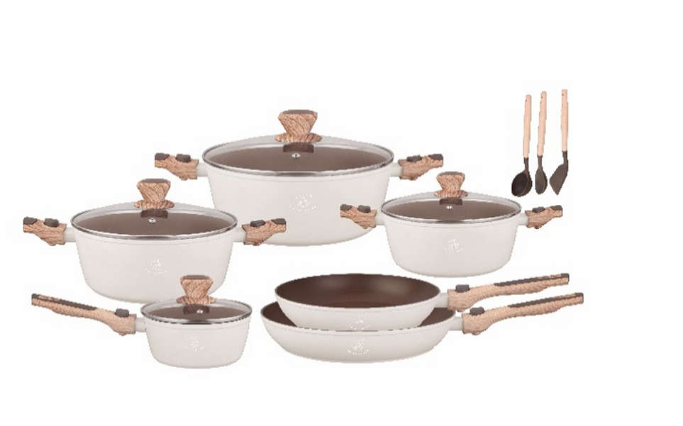13 Pieces Detachable Cookware Set with Utensils – Black | Beige