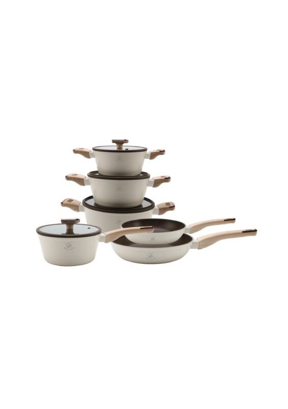 12 Pieces Cookware Set with Utensils and Oven Mitts – Pink | Beige | Black