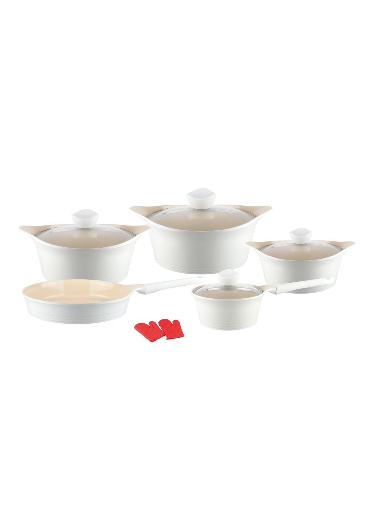 - Elegant White/Beige Color: The cookware set features a stylish white/beige color that complements any kitchen decor, adding a touch of elegance to your cooking space.