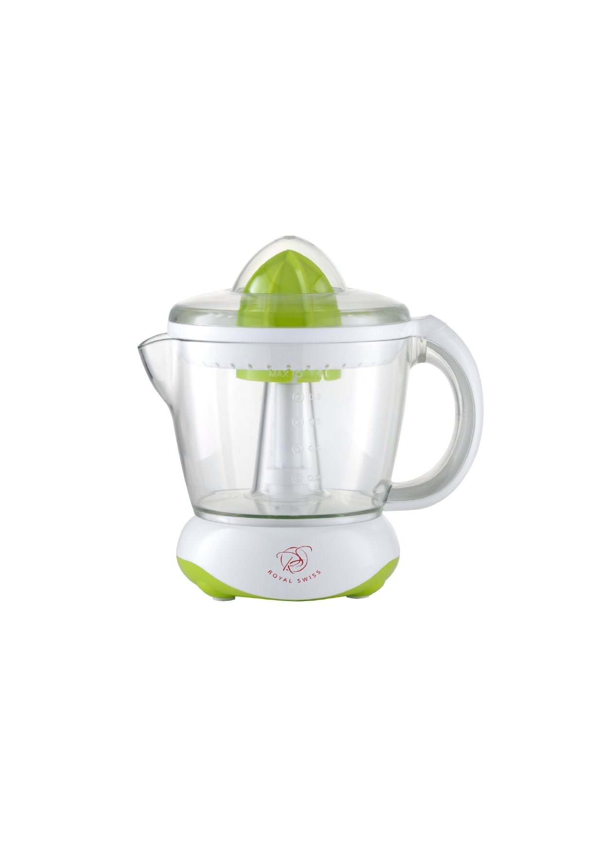 Introducing the Royal Swiss Electric Juicer, designed to make fresh juice effortlessly while minimizing mess. This juicer features a large bowl to catch the juice and a convenient handle for easy pouring.