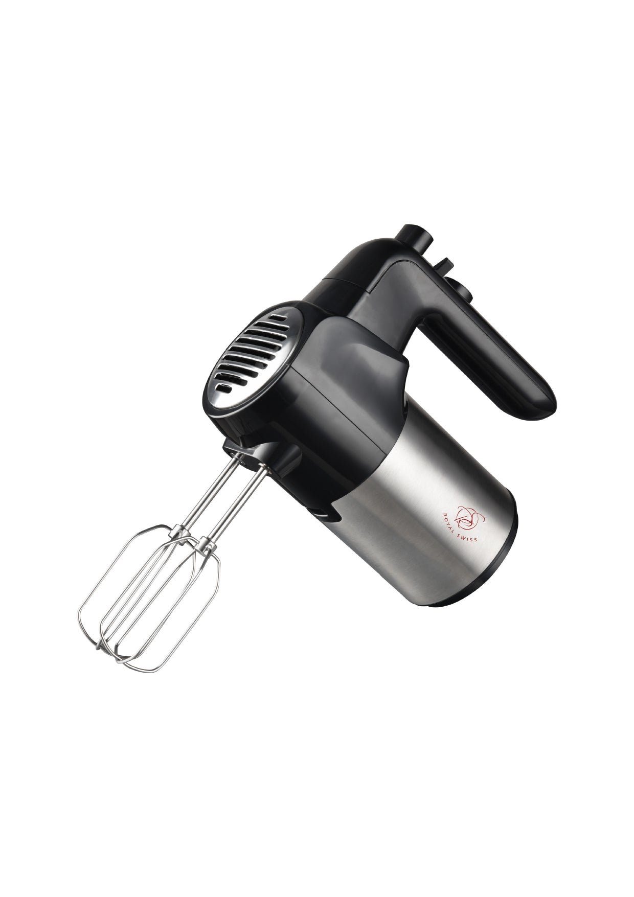 Introducing the Royal Swiss Stainless Steel Hand Mixer, a versatile and durable appliance designed to make baking and cooking tasks easier. This hand mixer comes with a set of attachments to handle a variety of mixing needs.